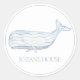 Este belo adesivo apresenta uma baleia aquarela em tons macios de azul e branco. Personalize com sua escolha de nome ou texto especial.