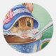 "Ratos do tempo do chá, Rato nº 2" Cartão postal de Arte com Aquarela do artista Jean Weiner "Ratos do tempo do chá, Rato nº 2" apresenta um camundongo de campo certeiro pronto para desfrutar de uma xícara de chá da tarde. Ela está vestindo sua capota azul favorita, adornada com uma fita de rendas brancas e rosa. A bela equipe da porcelana azul e branca tem um delicado design floral. Este design é capaz de iluminar o dia de qualquer bebedor de chá ou entusiasta do rato! Este produto foi projetado usando a pintura a aquarela original do artista Jean Weiner, "Ratos do Tempo do Chá, Rato nº 2." Todos os direitos de reprodução estão reservados.