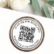 Coluna redonda com seu código QR e texto personalizado em uma fonte serif elegante. À volta está um grão de madeira marrom, borda dupla. Altere as cores das fontes, mova e redimensione os elementos com a ferramenta design.
