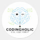 Add a clean and modern coding vibe to your gear with this white-background Classic Round Sticker featuring a futuristic tech brain with flowing 0's and 1's, bold “CODINGHOLIC” text, and the motivational tagline “FUEL. CODE. REPEAT.” Perfect for programmers, software developers, and tech enthusiasts, this round sticker is ideal for laptops, notebooks, water bottles, desks, and tech accessories. Made for everyday use, it’s a great way to personalize your workspace or devices while showing your passion for programming and technology. An excellent gift for coders, developers, tech students, and anyone living the coding lifestyle.