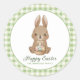 Celebre a Páscoa com um toque doce e pessoal com este adesivo de Feliz Páscoa apresentando um adorável coelho segurando uma cesta de ovos de Páscoa pastéis e uma borda xadrez em aquarela verde suave. O cumprimento e o nome da família são personalizáveis, tornando-o um adesivo personalizado encantador para presentes de Páscoa, sacos de guloseimas, envelopes e lembrancinhas de festa.