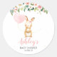 Coelhinho Floral Cor-de-rosa e Envelope Balão Selo Coelho chá de fraldas da menina Cute, selo com um belo coelho aquoso, coração cor-de-rosa em forma de coração e um arranjo floral rosa, branco e verde.