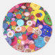 Um conjunto de botões coloridos com olhos. Botões azuis cobaltos brilhantes, botões cor-de-rosa e botões bonito vermelhos e laranja.