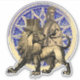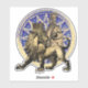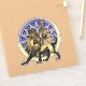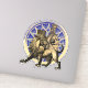 Leão de ouro heráldico com estilo Steampunk com chapéu superior, peça e elemento redondo arquitetônico em azul