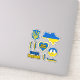 Coleção de nove adesivos vinílicos feitos sob medida - casaco de armas ucranianas (trizub) da Ucrânia, um mapa da Ucrânia, um símbolo de paz com a bandeira da Ucrânia, um coração, e textos dizendo "Glória à Ucrânia" e "Ucrânia" em língua ucraniana