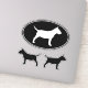 Colagem de adesivos de corte ovais e mortas. Estes decalques duráveis de silhueta para cães são à prova d'água e resistentes a arranhões. Coloque esses adesivos de vinil Touro Miniatura Terrier no seu laptop, telefone, notebook, garrafa d'água, capacete, skate ou até mesmo no seu carro. Visite o Doodle World de Jenn para obter ainda mais decalques de vinilo de raça canina e presentes do amante da MiniBull.