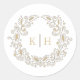 Colhe um adesivo de casamento estilizado de monograma de coroa em tons de amarelos quentes e castanhos. Personalize suas próprias iniciais de monograma. Outras cores e itens correspondentes estão disponíveis. Ideal para um casamento no final do verão ou no início do outono. © Desenho manual original convertido nesta coroa gráfica. O design é estilizado com orelhas de trigo abstrato e folhas coalhadas e desenhado por Sarah Trett para www.mylittleedenweddings.com apenas no Zazzle.