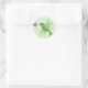 O colibri verde bonito está alimentando de uma flor cor-de-rosa. Etiqueta para amantes do pássaro.