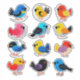 A lively collection of twelve cartoon-style bird stickers in bright colors. Ideal for kids crafts, scrapbooks, or classroom décor, conveying friendship, playfulness, and nature-inspired charm.