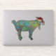 Engraçado e engraçado, Cabra, vestindo um chapéu de Papai Noel. Um humor de arte animal de fazenda picante para agradar aos seus amigos e familiares. Cabra festiva bonita com padrão teórico original de arte por Catherine Sweetman