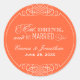 O monograma de casamento redondo favorita o adesivo com o tema "Comer, Beber e Ser Casado" no outono / Cor laranja do outono e cor branca. Personalize com os nomes da noiva e noiva e a data do casamento.