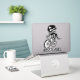 Um fóssil de dinossauro engraçado andando de bicicleta.