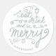 Rótulos e adesivos personalizados para presentes de comida de Natal com o design "Coma, Beba e Alegre-se" e nome personalizado.