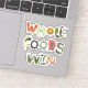 Mostre o seu amor por comidas inteiras com esta citação fonética de comida que diz "Win Inteiro da Comida" com melancia, melancia, laranja, alface, berinjela, funcho, azeitona, okra, fruta de dragão, espinafre, grama de trigo, salsa italiana e nectarina.
