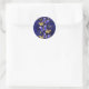 Composição de borboletas luxuosas de safira e joias de ouro em fundo azul texturizado.