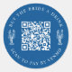 Arredonde algumas bebidas gratuitas para a noiva na sua festa de solteira ou no fim de semana de solteira com estes autocolantes personalizados de código QR em azul e branco náutico mediterrânico. Design apresenta duas linhas de texto personalizado (mostradas com "comprar a noiva uma bebida" e "digitalizar para pagar por Venmo") em letras brancas, com um código QR personalizável no centro, acentuado por duas ilustrações de lagosta. Adicione o link ao seu serviço de pagamento ou aplicativo preferido, e o código QR será atualizado para que os colegas (ou admiradores) possam fazer a varredura para pagar!