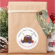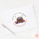 Redondos de autocolantes de "obrigado" com um tema de tricô. Um cesto de fios, bolas de fios com agulhas para tricotar, é a imagem no centro dos autocolantes brancos que vêm em dois tamanhos. Personalize o texto que se curva em volta de cima e de baixo com o nome do compro e o texto "obrigado você para a sua compra".