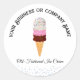 Esta etiqueta adesiva apresenta um design de compro de sorvete. O fundo é um branco sólido, com um confete brilho suave e colorido do arco-íris na parte inferior. Um cone de sorvete napolitano com aspersão arco-íris é colocado no centro. O nome da empresa ou da empresa é impresso no topo, com um exemplo de slogan na parte inferior que você pode personalizar para incluir seu próprio nome comercial personalizado ou outro texto.