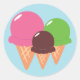 Este design de cone de sorvete giro e brilhante vem com generosas colheres de morango, chocolate e sorvete de pistachio derrubando alguns cones de waffle iummy! Um presente adorável para o amante do sorvete em sua vida!