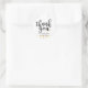 ADESIVO REDONDO DE CONFETES DE CORAÇÕES DOURADOS OBRIGADO. Apresentando confetes de corações dourados e Obrigado em letra cursiva da moda. Personalize com seus próprios nomes e data. Criado por Pure Piglet© em www.zazzle.com/purepiglet*