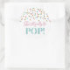 Chá de fraldas ela está pronta para pop a favor do adesivo de etiqueta com rosa claro, padrão de confete azul e dourado, perfeito para favores de pipoca. Confetti é apenas efeito fotográfico.