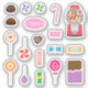 Um chocolate doce e doces doces com bar de chocolate, lábios, doces embrulhados, cana doce e doce de mascar. Perfeito para as meninas com um dente doce usarem adesivos para raspagem ou maiores para decorar suas bolsas de bagagem, laptop e coisas.
