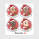 Conjunto de quatro adesivos de vinilo cortados com ilustrações de meninos ou meninas felizes e bonitinhos, que estão vestidos de Natal e vestem um chapéu vermelho de Papai Noel e segurando um presente, quatro bebês diversos - caucasianos, negros/africanos, asiáticos ou hispânicos, de fundo vermelho; com um modelo de texto personalizável para seu nome ou mensagem. Uma versão recentemente editada para 2022!