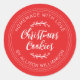 Um autocolante de produtos assados, russo e moderno, com o texto casado com amor, biscoitos de natal e o seu nome na caligrafia manuscrita e na tipografia moderna num fundo vermelho brilhante. Basta adicionar seu nome e o nome do produto à etiqueta. Desenvolvido exclusivamente para você pelo Happy Dolphin Studio. Se precisar de ajuda ou produtos correspondentes, entre em contato conosco em happydolphinstudio@outlook.com.