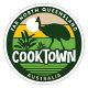 Capturar o espírito da Austrália de Cooktown Queensland com esta design ousada, ao estilo vintage, apresentando uma silhueta impressionante de um conjunto casuar contra um pôr do sol brilhante — uma guarnição de excelente para baías, viajantes, aventureiros e qualquer um que ame explorar a Austrália.