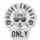 Cool Husky Dog Energy Sticker. Show off your love for huskies with this fun “Husky Energy Only” sticker, featuring a stylish husky in sunglasses—perfect as a small gift for husky owners and dog fans alike.