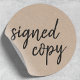 Um design personalizado simples de "cópia assinada" na tipografia moderna e minimalista de escrita manuscrita, em um estilo informal informal em preto, em fundo kraft rústico. O acessório perfeito para a assinatura do livro para qualquer autor ou escritor! #signedcopy #sticker #autor #rustic