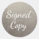Crie os seus próprios autocolantes de "cópia assinada" contra um efeito fotográfico de folha metálica prateada. Personalize o estilo, a cor e o tamanho da fonte. Tente preferencialmente de texto preto que o branco.