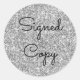 Crie os seus próprios autocolantes de "cópia assinada" contra uma fotografia de brilho prateado (falso brilho, não flocos reais). Personalize o estilo, a cor e o tamanho da fonte.