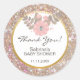 Dê um toque a esse obrigado único, seus adesivos de chá de fraldas. Rosa e castanho com flor e diamante sobre fundo brilhante e brilhante. Combina com qualquer festa de chá de menina. Personalize-os com a mensagem ou adicionando nome.