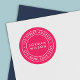 Vinheta redonda de Endereço de Retorno Moderno com borda dupla redonda branca para o seu endereço entre e o nome no centro que é fácil de personalizar tudo em relação a uma cor de fundo editável (clique em personalizar). Agora você nunca mais precisa escrever seu endereço de novo. Excelente de envio de cartas/cartões/convites. Personalize-o substituindo o texto do marcador de posição pelo seu nome e endereço. Para obter mais opções, como alterar a cor do plano de fundo, a fonte, seu tamanho, espaçamento entre letras e para expandir ou contrair texto curvo, clique no botão "Personalizar". *Observe que a Marca d'água do Zazzle que aparece na visualização de zoom NÃO aparecerá no produto impresso final. © Rosewood e Citrus