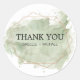 Lave aquosa verde moderna e minimalista Obrigado A design do adesivo começa com uma lavagem verde aquosa de cor verde macia. Uma elegante estrutura geométrica rosa dourada dá esta definição abstrata de design. Obrigado e seus nomes estão escritos em uma combinação de fontes muito moderna. É muito fácil personalizar. Isto é parte de uma suíte de convites para casamento maior. Você deveria poder ver a conexão e alguns dos produtos nela contidos. Por favor, entre em contato comigo, se precisar de ajuda para encontrar os itens.