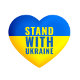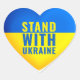 Um coração com as cores da bandeira ucraniana, azul e amarela, com o texto "Fique com a Ucrânia".