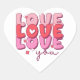Love Love You Romantic Heart Typografia Heart Stickers apresenta o texto "Love Love Love Love You" em moderno roteiro de tipografia rosa, vermelho e roxo acentuado com bonitinhos doces. Criado por feriados Evco www.zazzle.com/store/evcoholidays