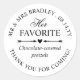 Personalizou seus adesivos favoritos para suas bolsas de casamento que você dará aos seus convidados como obrigados para ir ao seu casamento! Em texto curvo, adicione seus nomes, data de casamento, e um obrigado para você. Escreva o tipo de tratamento que o saco ou a embalagem contém. Preto e branco Seus adesivos favoritos apresentam um divisor romântico com duas setas elegantes apontando para um coração.