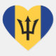 Bandeira de Barbados. A bandeira nacional de Barbados foi oficialmente adotada em 30 de novembro de 1966, o primeiro Dia da Independência da ilha. É constituída por uma tribanda de duas bandas ultramarinas, que supostamente representam o oceano; separadas por uma banda média ouro, representando a areia da ilha. Uma cabeça de tridente preta (normalmente chamada de "tridente quebrado") está centrada na banda do ouro. O símbolo tridente foi tirado do crachá colonial de Barbados, onde o tridente é mostrado com a Britannia segurando-o. A parte inferior quebrada simboliza uma quebra simbólica de seu status de colônia. Os três pontos do tridente representam os três princípios da democracia - 1) governo, 2) a favor e 3) pelas pessoas.