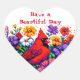 Adesivo Coração Cardeal Vermelho e Flores | Belo dia