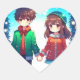 Adesivo Coração Casal de anime bonito segurando as mãos no Natal