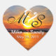 Adesivo Coração Casamento de Destino de Monograma de Oceano Sunset