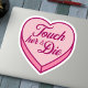 Sticker "Toque nela e morra" - Uma declaração de negrito para os leitores românicos! 📚 💗 Mostre seu amor por tropas de romance protetoras com este marcante adesivo cardíaco doce "Toque nela e morra". Projetado em tons rosa vibrantes, este adesivo lúcido, mas feroz, é perfeito para amantes de livros, bibliófilos e leitores que adoram histórias com personagens intensos e protetores. Quer decorando seu laptop, diário, garrafa de água ou acessórios de livros, este adesivo é obrigatório para fãs de romance literário emocionante.