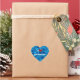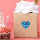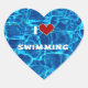 Texto branco sobre fundo aquático, Eu adoro nadar, adesivo em forma de coração.