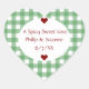 Um doce e apimentado design para o casamento a favor de jalepeno jelly jars, esta etiqueta de autocolante em forma de coração apresenta um padrão de gingham eterno de verde-pimenta com uma fonte branca oval e vermelha quente. Há dois corações vermelhos e os nomes da noiva e do noivo com a data do casamento e um ditado romântico. Todos os campos de texto são modelos para que você possa personalizar #wedingfavor #jellyjar #stickerlabel #spicy #jalepeno