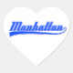 Manhattan, Nova Iorque, escrito com uma haste (cauda). Fontes em branco e azul. Design de texto original.