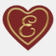 Monograma E em ouro 3D com borda dourada em um adesivo cardíaco faz um adesivo pessoal excelente e selo de envelope. A cor de fundo pode ser alterada.