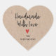 Um adesivo personalizado moderno "feito à mão com amor" em um fundo kraft rústico. Faça-o seu adicionando seu próprio nome. Um bonito toque final para todos os presentes feitos à mão. Projetado para você pelo Blackberry Boulevard.