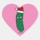 Adesivo Coração Pickle Natal vestindo um Chapéu Santa